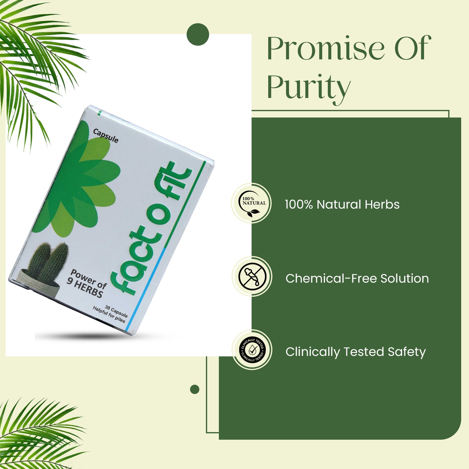 NATURALLY SAFE & EFFECTIVE FORMULA: FACT-OF-FIT Capsules are formulated with natural ingredients such as Haritaki, Shunthi, and Terminalia Chebula, providing a safe and chemical-free remedy for effectively treating piles.