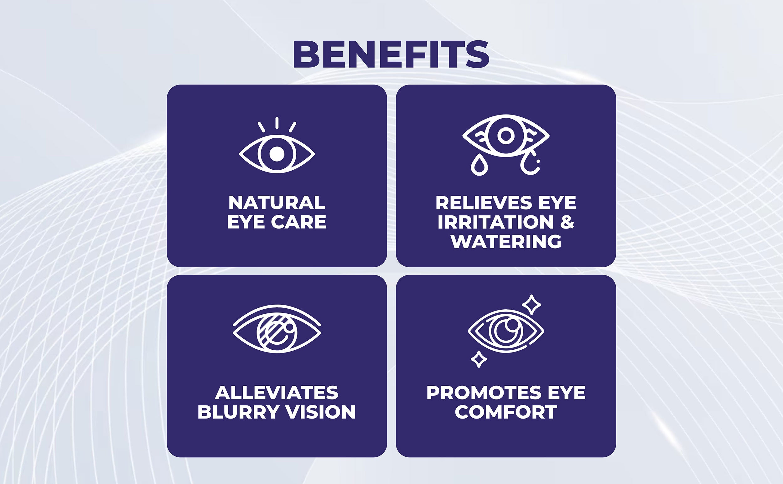 RELIEVES EYE IRRITATION & WATERING: It helps soothe eye irritation, dryness, and excessive watering, offering relief to those affected by environmental or seasonal changes.